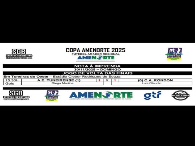 Tuneiras levou o título de campeã pelo placar adquirido fora de casa no primeiro jogo onde venceu a equipe de Rondon pelo placar de 1 a 0. Agora as equipes descansam e em Janeiro de 2026 os municípios já começam a se articular para o próximo campeonato.